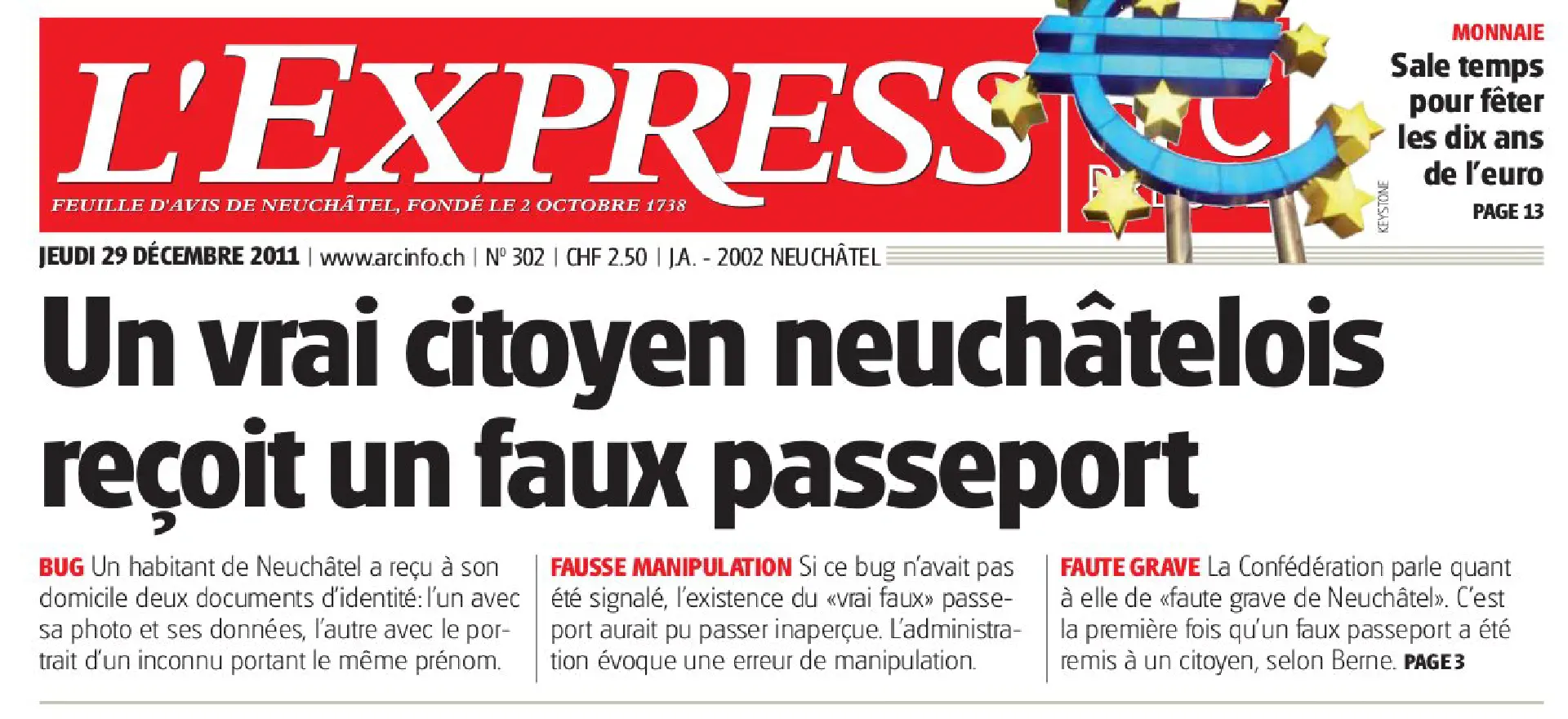 Le quotidien neuchatelois L’Express/L’Impartial publie aujourd’hui un grand article sur l’histoire des passeports dont je vous rabats les oreilles depuis quelques temps.