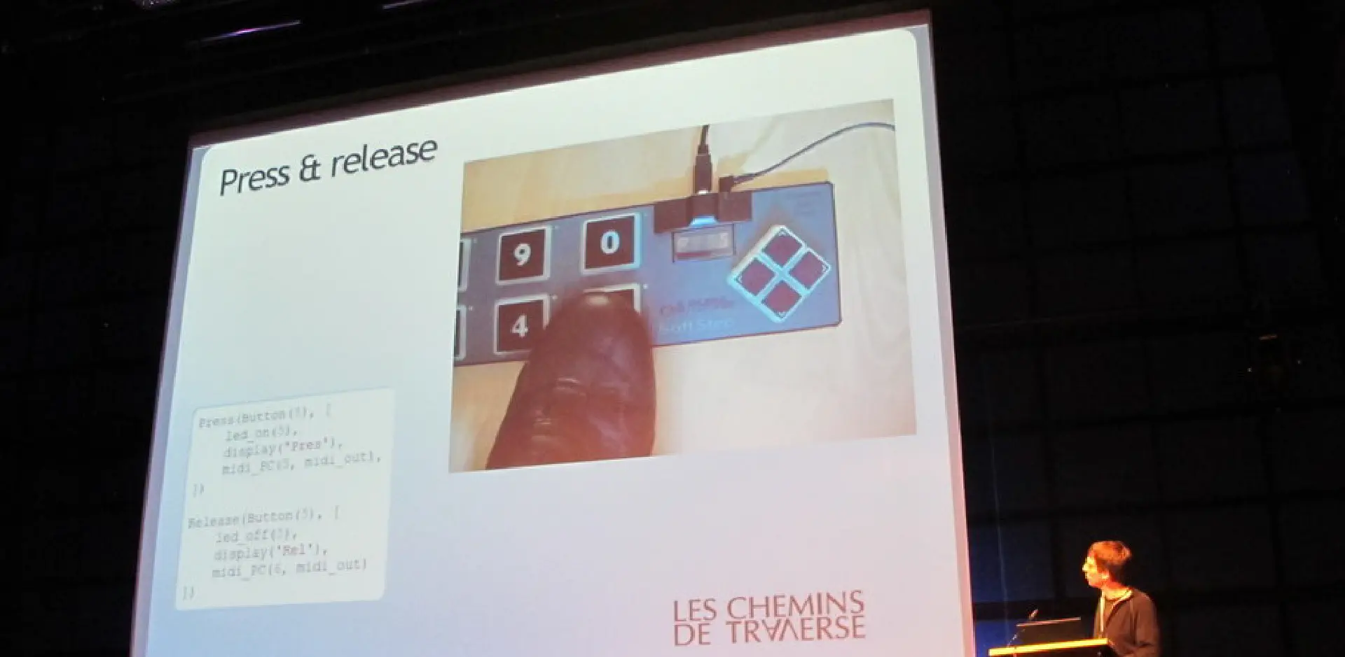 Présentation de FooCoCo, un module python (basé sur pyo) permettant d’utiliser à son plein potentiel le SoftStep (pédalier midi USB atypique) sous Linux (notamment). Vidéo, Diapos (naviguer avec les flèches du clavier!).